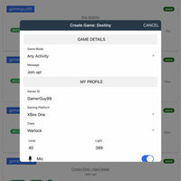 A simple app for finding other gamers to enjoy the video game Destiny.
