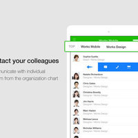 - You can easily connect with members in Team message room, synced with the company’s organization chart, and in Group message room where there are members you frequently team up with. You can also share the work-related information and files.