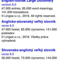 This Lingea English-Slovak Large Dictionary is the largest contemporary off-line electronic dictionary in the Slovak market. It is designed for demanding learners, teachers and translators.