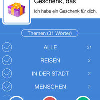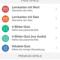 You can practise vocabulary and learn playfully with several games. There are flashcards as well as matching games and a spelling challenge to practise writing. Upon installation of the app, you will have access to 30 words so that you can get started straight away.