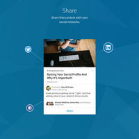 LinkedIn Elevate gives you an easy way to discover unique articles and insights about topics you’re interested in – then share them to show you’re at the top of your game. With great content hand-picked by people at your company, you’ll feel confident that you’re sharing the kind of valuable, relevant stuff that your network will truly appreciate.