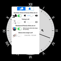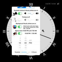 Slide your finger or tap a button to turn On / Off and set the volume level of the quarterly chimes, hourly strikes, and the ticking.