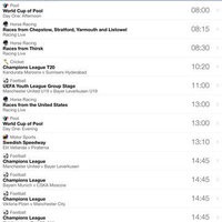 Get the latest TV listings for over 35 different sports, never miss a match again whether its Football, Golf, Cricket, Horse Racing, Formula One or any other sport; we have all the top sporting events listed from all the top UK TV broadcasters!