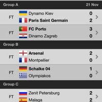 UEFA Champions League live soccer / football scores, live group tables and more, directly from the source, the 1st live score service on the Internet, powered by LiveScore.com since 1998.