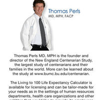 Thomas Perls MD, MPH is the founder and director of the New England Centenarian Study, the largest study of centenarians and their families in the world. More can be learned about the study at www.bumc.bu.edu/centenarian.