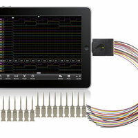 LogiScope is a full functional 16 channel logic analyzer. It's capabilities include up to 100MSPS sampling rate, SPI, I2C, UART, and parallel decoding. It allows you to trigger on virtually any type of event, multiple events, a series of events from single, multiple, serial, decoded, and even parallel data.