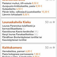 - Vaivaton lounaslistojen selaus: päivän lounas, koko viikon lounaat, lounaspaikat ja lounaat kartalla