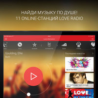 - эфир Love Radio и десять онлайн-станций на любой вкус: Love Gold, Love Russian, Love Power, Love Alternative, Love Dance, Love Chill, Love Top40, Love Summer,Love R'N'B и Love Teens;