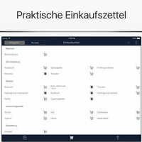 - Einkaufsliste, gruppiert nach Produktkategorien oder Rezepten;