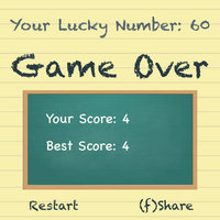 A simple and fun game with numbers Take a quick hand and eye catching your lucky number when that number displayed on the screen Good Luck!