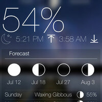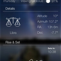 Zodiac Sign for current day as well as real-time moon positioning (Altitude, Azimuth, Right Ascension, Declination).