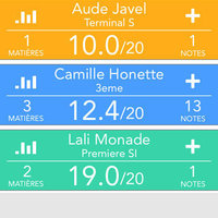 - Suppression des notes, profil ou matières par un simple slide depuis la droite de l'écran.