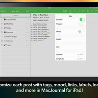 MacJournal for iPad allows users to organize, chronicle and edit any life event using the same look and feel as the desktop version. Unlike other journaling apps, MacJournal offers the ability for users to blog to many of the popular servers such as Blogger, Wordpress, Tumblr and Posterous as well as being able to download existing entries. Use MacJournal on its own or share your MacJournal data over the cloud with your other Mac OS and iOS devices. Even share documents via iTunes. Whichever way, MacJournal has you covered.