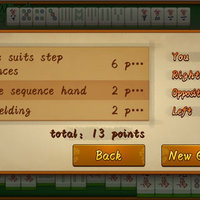 At the start of the game, the dealer discards the most useless tile, while all other three players are entitled to have the discarded tile. The dealer’s opponent on the right (player on the right) has the right to chow, pong or kong that tile, while the other two players can only pong or kong it. To chow means that if you want to gather together a sequence, and you already have two tiles of the sequence, for example, you already have Bamboo Four and Bamboo Five, while your opponent on the left happens to discard Bamboo Three, you can chow it to gather together a sequence. To pong means that if you want to gather together a triplet, and you already have two tiles of the triplet, for instance, you have had two tiles of Dot Nine, you can pong if anyone discards Dot Nine. To kong means that if you already have a closed triplet, say, you already have three tiles of Character Five, you can kong if anyone discards Character Five. If the players want to chow, pong and kong at the same time, the one wanting to pong or kong has the priority. Anyone that chows, pongs or kongs must expose the tiles chowed, ponged or konged without making any change. If one discards a tile, but nobody chows, pongs or kongs, the opponent on the right can withdraw a tile from the stack, which is called drawing. There is another situation of kong:if you have an triplet(exposed or closed), say, you already have three tiles of Dragon Green but you draw a tile of Dragon Green when drawing, you can also kong. The player konging tiles must withdraw a tile from the end of the stack. Of course, no matter whether you chow, pong or draw, you must discard a tile after the action to maintain 13 tiles.