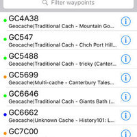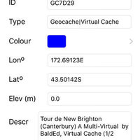 * geocachers can view the full detail in geocaching.com PocketQuery files, with automatic colour coding by cache type.