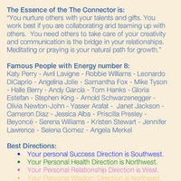 Transform the energy of your environment through your Energy number. Your Energy number indicates your Energy Archetype and gives your four best compass directions that support your Success, Health, Relationships and Wisdom. The Marie Diamond compass in the App shows immediately where these directions are located in the room that you are using the Marie Diamond App. When you know your directions you can activate them with the right Diamond Feng Shui tips.