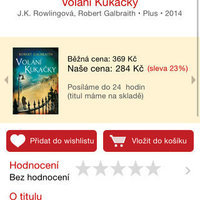 Navíc vyhledávat můžete nejen zadáním názvu či autora, ale i pomocí fotoaparátu ve Vašem iPhonu! Stačí stisknout ve vyhledávání ikonku s čárovým kódem, nasměrovat objektiv na čárový (EAN) kód knihy (nebo jiného produktu, který prodáváme), a pokud se tento titul nachází v naší databázi, automaticky se otevře.