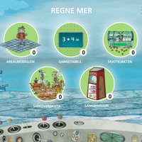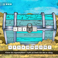 Skattejakten er et algebraspill der du drar tall og symboler på riktig plass i multiplikasjons- og divisjonsstykker, for å åpne likhetstegnlåsen på skattekistene.