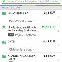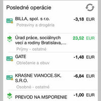 • Zostatok na účte, čerpanie kreditnej karty (voliteľne)
