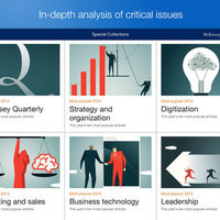 Get McKinsey’s latest thinking on the biggest issues facing senior executives, everything from leadership and corporate strategy to globalization and technology’s impact on business and society. Explore new insights on digitization, marketing, and analytics, across industries such as energy, health care, and financial services. In fresh content updated daily, McKinsey consultants and contributing experts look at the latest trends in digital transformation, organizational restructuring, bringing data to bear on business strategy, gender parity in the workplace, and more. Content includes articles from McKinsey Quarterly, reports from the McKinsey Global Institute, videos, and podcasts.