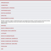 De forma simples e objetiva, este aplicativo apresenta os principais medicamentos utilizados na prática clínica. São mais de 500 medicamentos, com informações que nomes comerciais, genéricos, posologia, informações sobre receituário e muito mais. Além disso, contempla vários fármacos lançados no mercado brasileiro nos últimos anos, bem como informações sobre esquecimento da dose, interações medicamentosas, interações com alimentos, conservação e preparo, gravidez e lactação.