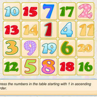 3. Find All Numbers: The child needs to find all numbers in ascending order. For small kids, there is a tip showing which number is next. A timer also shows the child's progress. This game improves attention capacity.