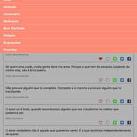 - Diversas categorias: Amor, Amizade, Aniversário, Motivação, Bom Dia e Boa Noite, Religião, Engraçadas.