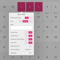 • Text notes (e.g. about period, taken medications, mood, friends) may be attached to each day.