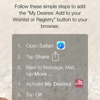 When you find the web page of a product you would like to add to your wish list, simply tap the "Share" button and our app will take care of the rest !