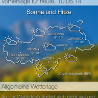 All contents on the www.provinz.bz.it/wetter website are available, plus new functions such as real-time push notifications of thunderstorms occurring in all municipalities of South Tyrol.