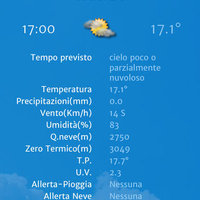 Le previsioni giornaliere sono fornite anche con il dettaglio orario, per darti, ora per ora, il massimo delle informazioni, come lo stato del cielo, temperature minime e massime, venti, zero termico, quota neve e le allerte dei principali fenomeni meteorologici.