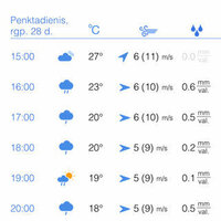 Programėlėje pateikiama detali informacija apie ateinančių 48 val. orus. Informacija apie temperatūrą, debesuotumą, kritulius ir vėją pateikiami kas valandą visai Lietuvos teritorijai.