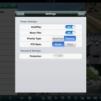 MEyePro HD allows iPad users to view and control live video streams from cameras and video encoders. The version support more convenient settings & functions. Features include: iPhone and iPod Touch compatible. Unlimited video on cellular and wifi. Support MultiChannel video encoder. Support for authentication. Support for Pan, Tilt, & Zoom control. Direct stream connection. No video going through 3rd party servers. Snapshot capability (while viewing live stream) to save to your local photo gallery. Support for landscape and portrait mode. Ability to change ip address and port as desired for internal and remote users. Support history view to switch different camera IP convenient. Support DVRs or IPCameras of different manufactures.
