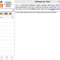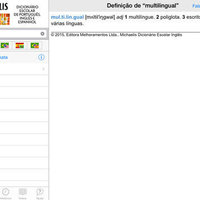 Get in a single application three dictionaries essential for studying, travelling or communicating: the "Michaelis Dicionário Escolar Língua Portuguesa", the "Michaelis Dicionário Escolar Inglês" and the "Michaelis Dicionário Escolar Espanhol". Together, these dictionaries contain more than 285,000 definitions, translations, expressions, examples and accreditations.