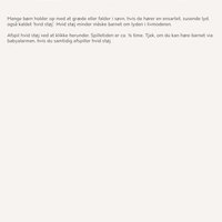 • Søvn: Støt barnets søvn og faste søvnrytme. Hjælp til søvnproblemer. Nyttigt redskab: Søvndyssende lyd, som du kan afspille for barnet, når det er uroligt.