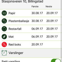 Ved å tillate varsling vil du kunne få automatiske varsler om tømming dagen før eller samme dag på et tidspunkt du selv bestemmer.