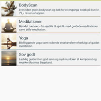 App’en har stor brugervenlighed og indeholder ca. 7 timers lydfiler med blandt andet guidede bodyscan’s, guidede meditationer, guidede yoga øvelser samt stille meditation. App’en er indtalt på dansk og kan anvendes af alle med både stor eller ingen erfaring med meditation.