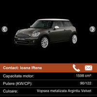 - contactarea rapida (un singur click) a specialistilor de vanzari MINI