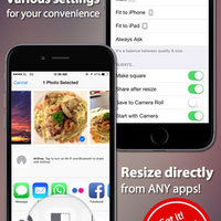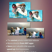 Use this app to resize & share photos/videos quickly without burdening your data usage. Import photos/videos from Camera Roll or any other apps, reduce their sizes, and export them to Facebook, Twitter, Email, Camera Roll, Copy to clipboard, or open them in any other photo/video processor apps on your device.
