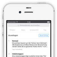 You can collect multiple meeting minutes within a "workbook", e.g. for projects or recurring meetings. With that you always get an overview of all previous meetings and their decisions and results.