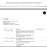 Create meeting minutes and acceptance protocols on your iPad and share them as clean and professional looking PDF-file to all attendees.