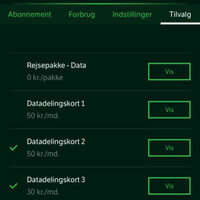 - Adgang til køb af tilvalg som for eksempel datadelingskort og ekstra data