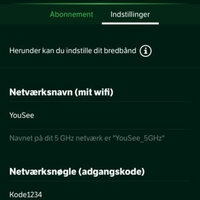 Oversigt over abonnement og adgang til Wi-Fi indstillinger med mulighed for at skifte netværksnavn, adgangskode og netværkskanal