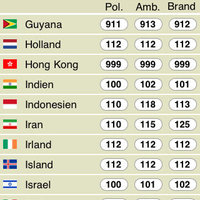 - alarmnumre i mere end 90 lande i verden til henholdsvis brand, ambulance og politi