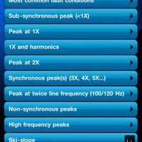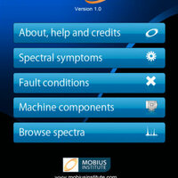 Mobius iVibe provides an easy way to look up machine fault conditions based on spectrum symptoms and machine types. You’ll see sample spectra, explanations of faults, and explanations of how to diagnose fault conditions. It is like a wall chart for your iPhone/iPod Touch.