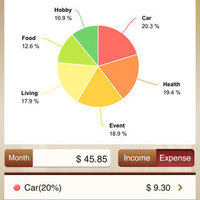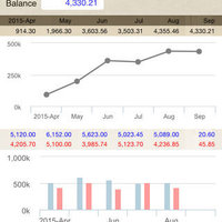 Based on the data entered, you can instantly see your expenditure by category and changes between each month. And you can see change of your assets and income/expenditure indicated by a graph as well.