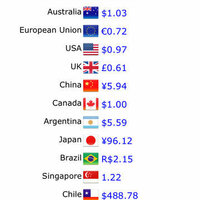Money wall is the easiest way to keep track of currency changes yet. Our unique design lets you instantly see the currency in 13 countries at once!