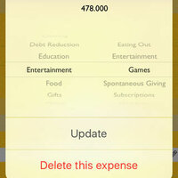 * Touch circled 'graph' button on the lower left corner of the screen to view the ups and downs of your expenses in graph.