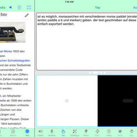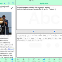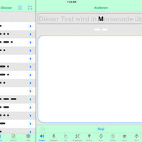 A special screen allows textual conversion of morse code and text. Exchange encoded messages with your friends.