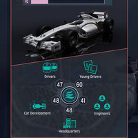 • This is your racing team. Hire drivers, develop your car and invest in technology.